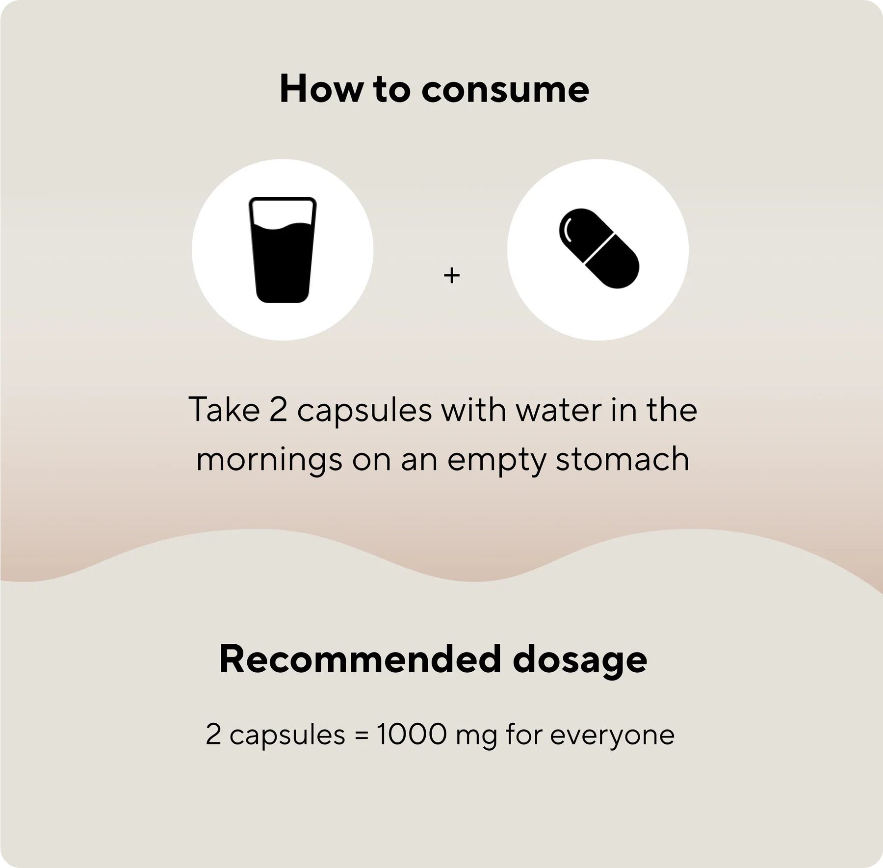 Take 2 capsules once per day, in the mornings on an empty stomach.