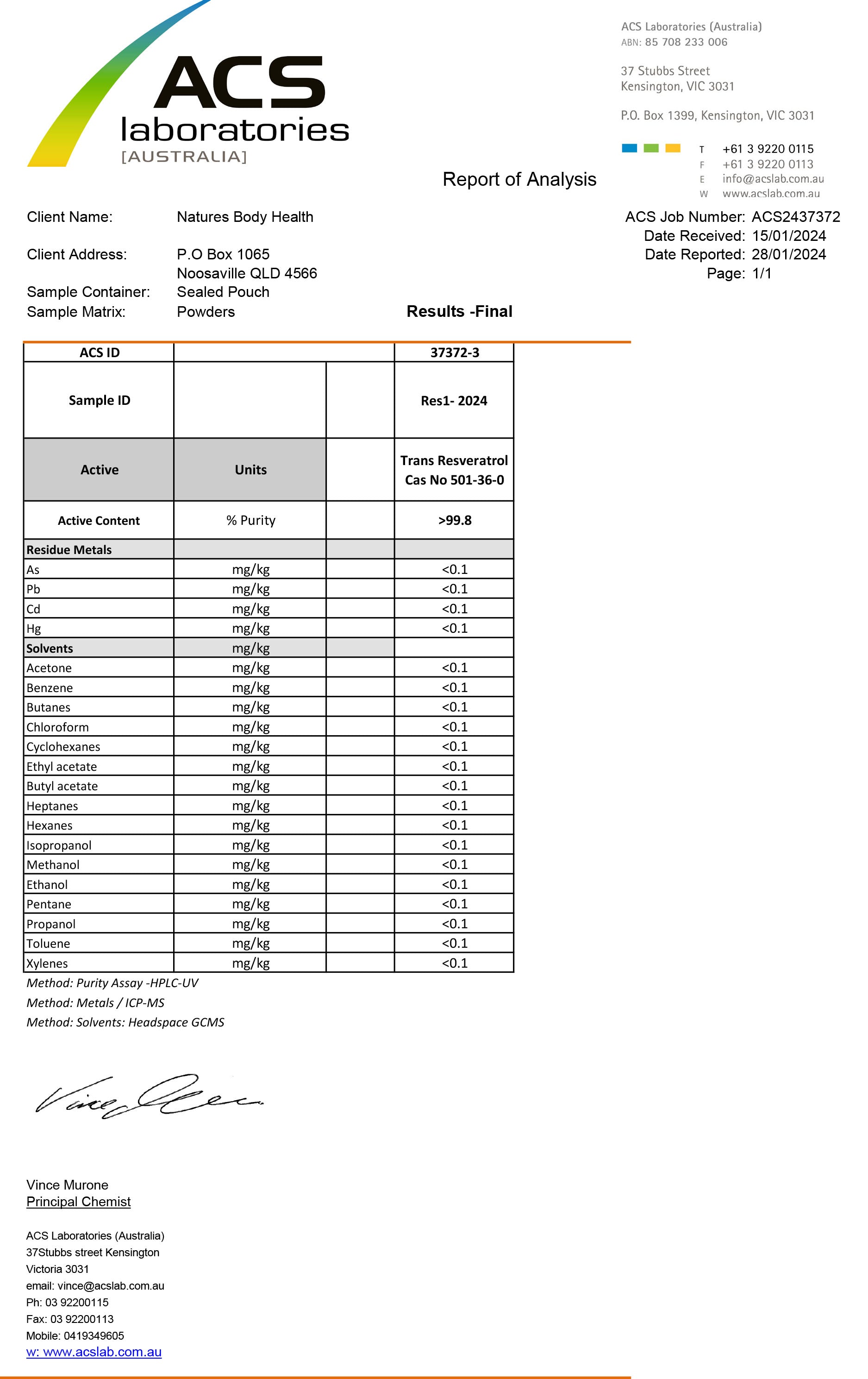 | Product Type | Micronised Trans-Resveratrol Powder |